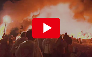 1000年以上も前から受け継がれている師走祭りは、毎年1月下旬の金曜日・土曜日・日曜日に行われます。木城町比木神社の一行がおよそ90㎞の道のりを2泊3日かけ美郷町南郷の神門神社まで巡回し、そこに滞在して帰るお祭りです。巡行の道中、地区を挙げて高さ10mにも上るかがり火を夜に焚いて迎える光景は圧巻です。